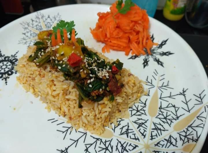 Egg fried rice with carrot salad